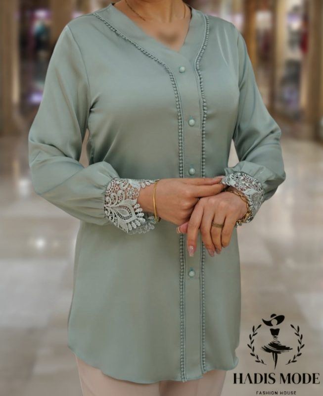 شومیز زنانه کرپ آستین توری مدل سایه